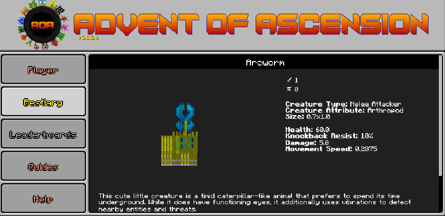 点击单独的生物条目中的标题将使玩家回到所有生物的列表。